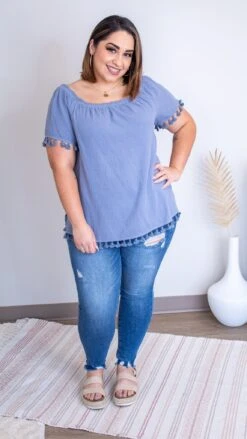 You’ll be ready for a walk on the beach in the Seaside Summer Top! She features a tassle fringe on the sleeves that is so sweet. Pair her with denim shorts for a super cute fit.