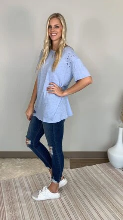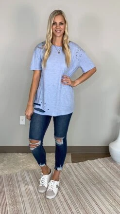 The Settling Down Top is the best distressed casual top! Pair it with jean shorts and sneakers for a fun Summer outfit! Which color will you get?
