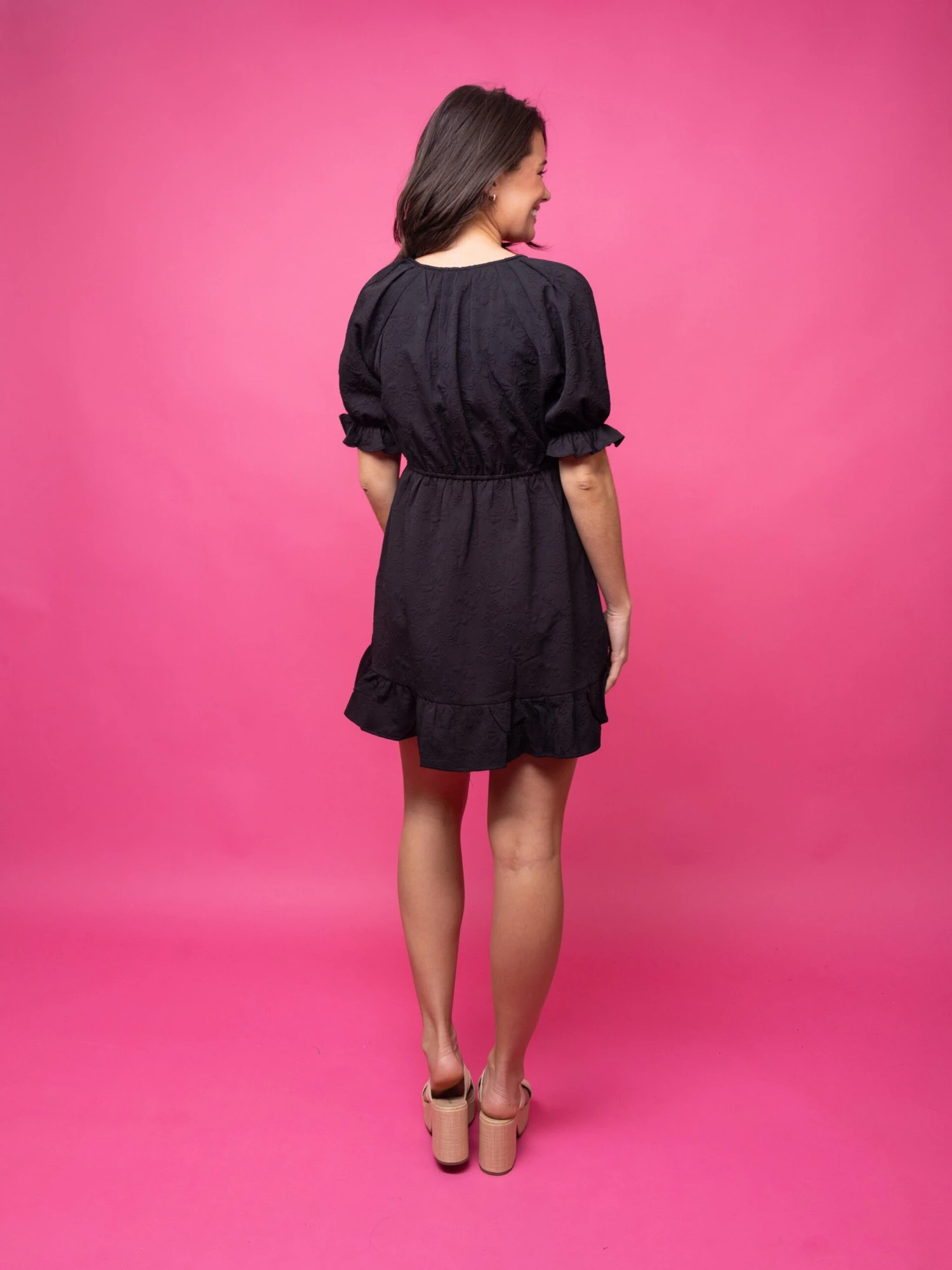 Features: Textured Floral Print, Tiered, V Neck, Short Sleeves