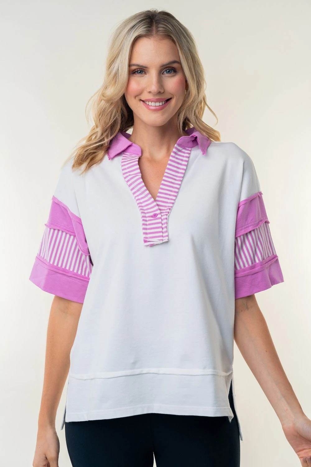 Features: Collar, Short Sleeves, Side Slits