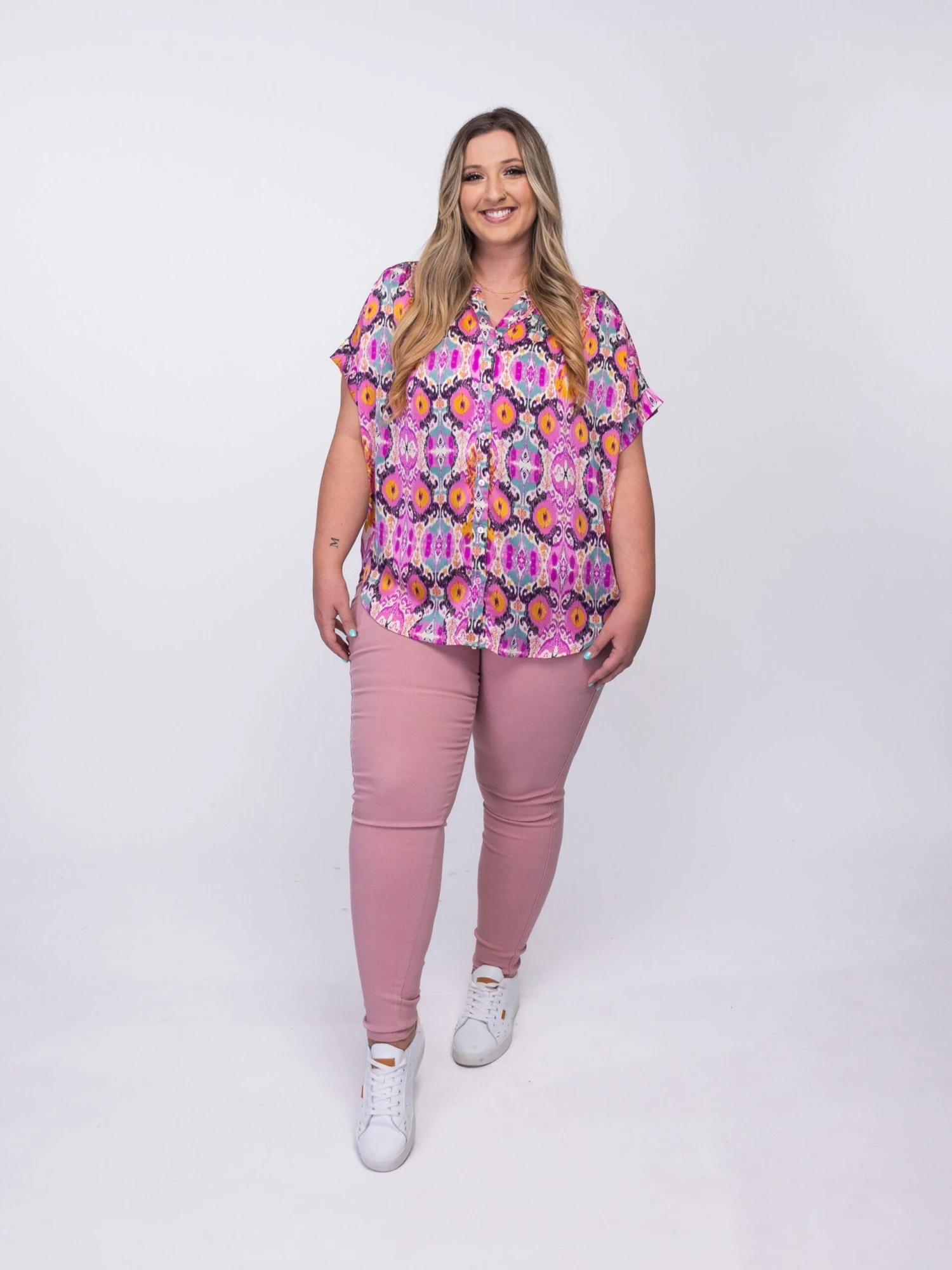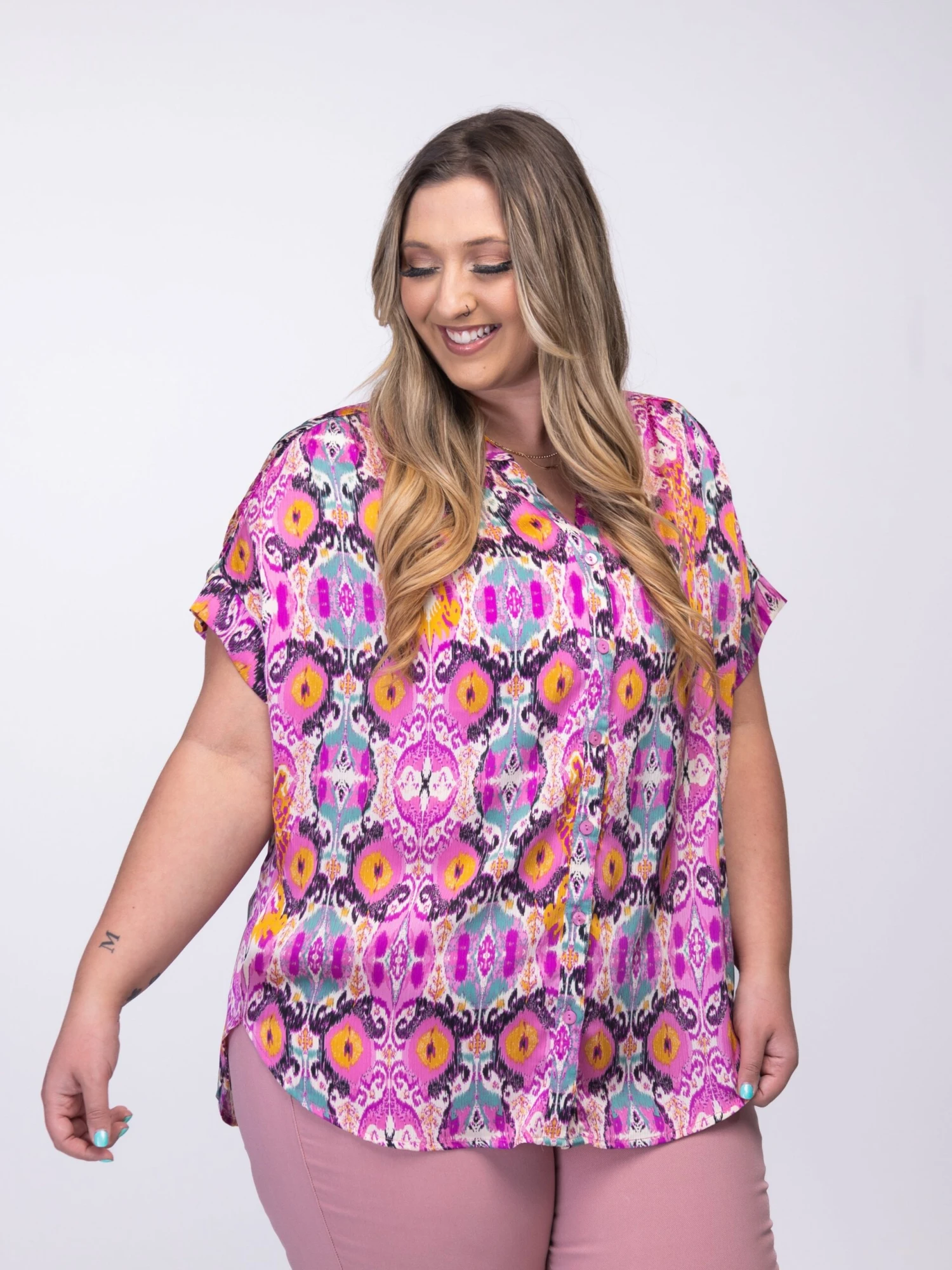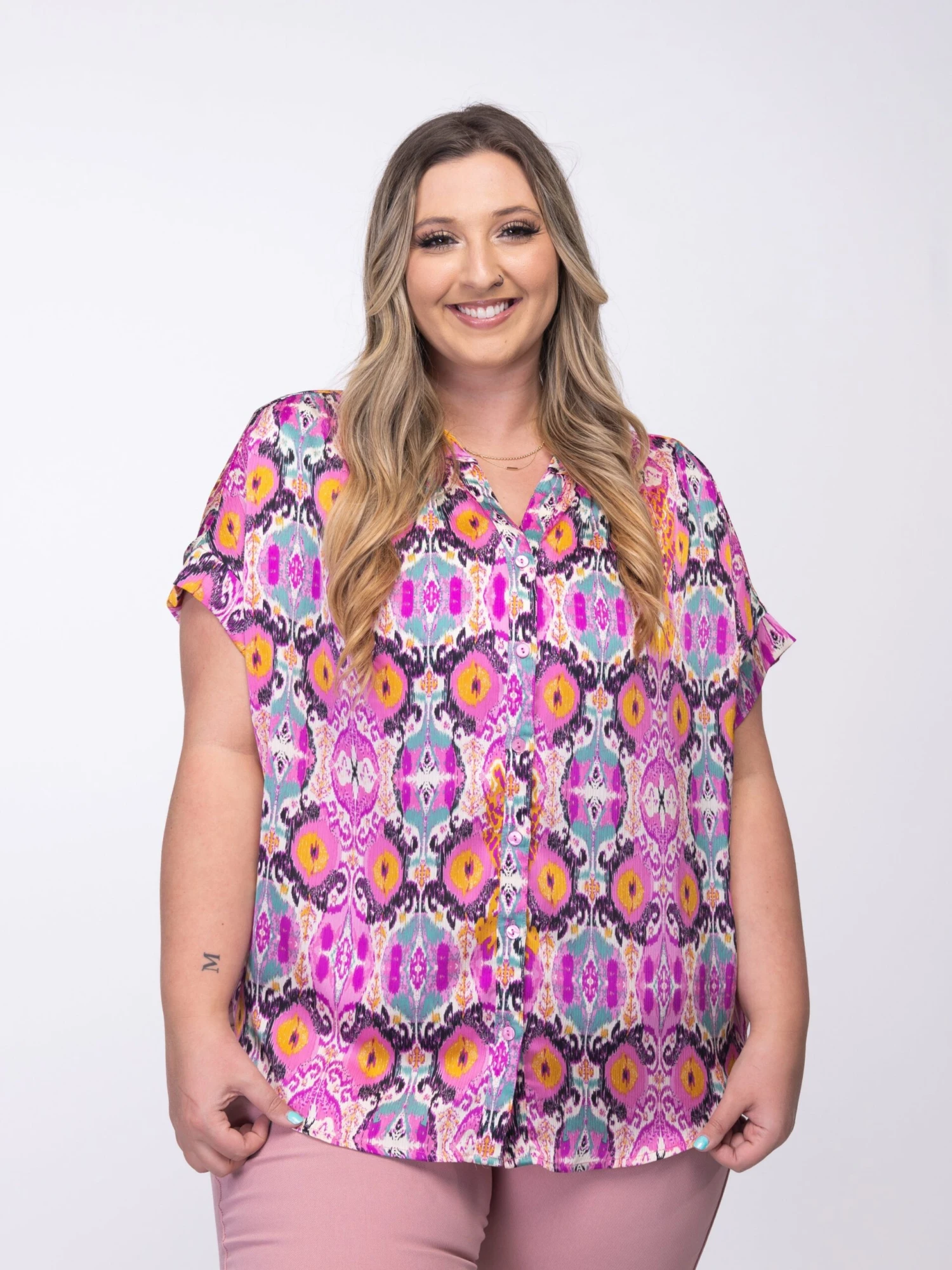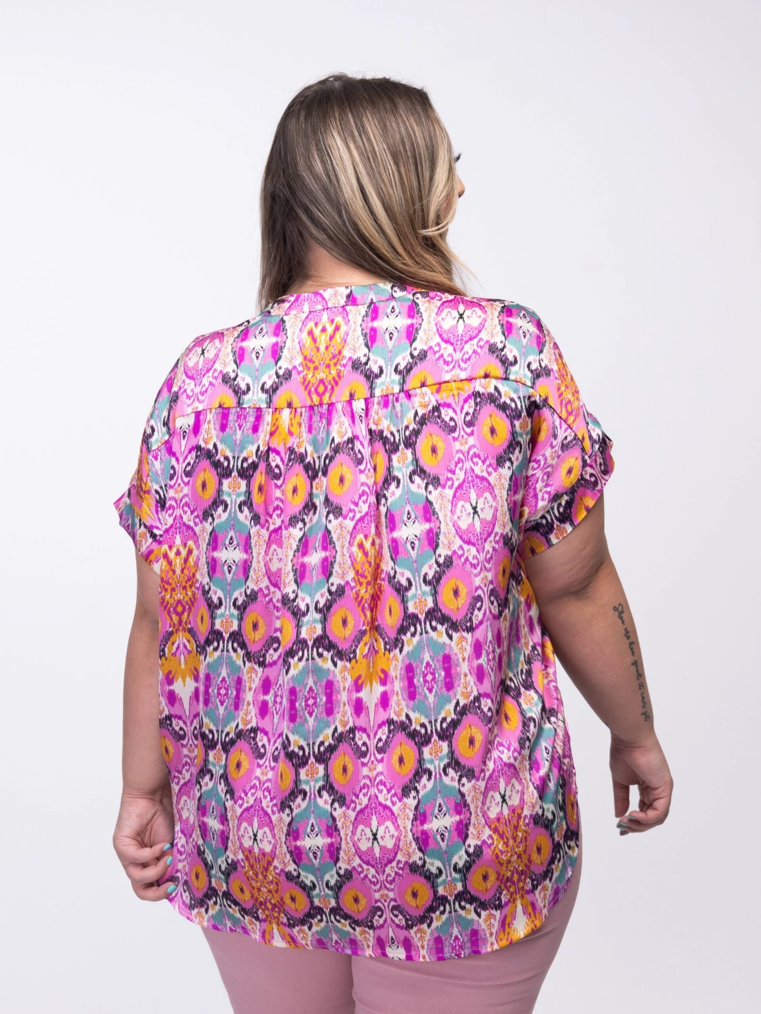 Stay effortlessly chic with this cute, printed top! The perfect way to add some much-needed color to your tops collection!