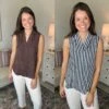 Features: Adjustable Straps, Ruffle Neck, Ribbed