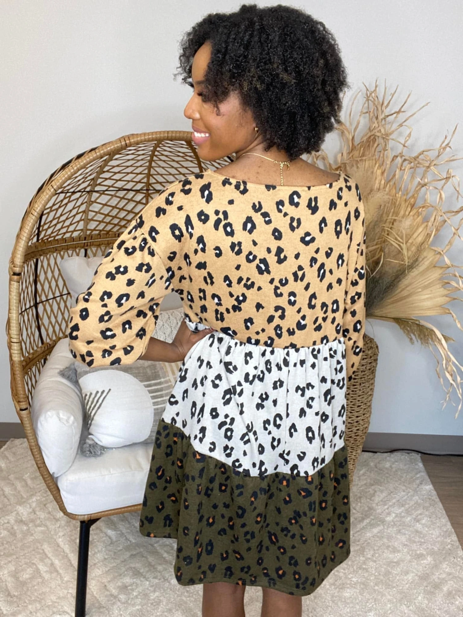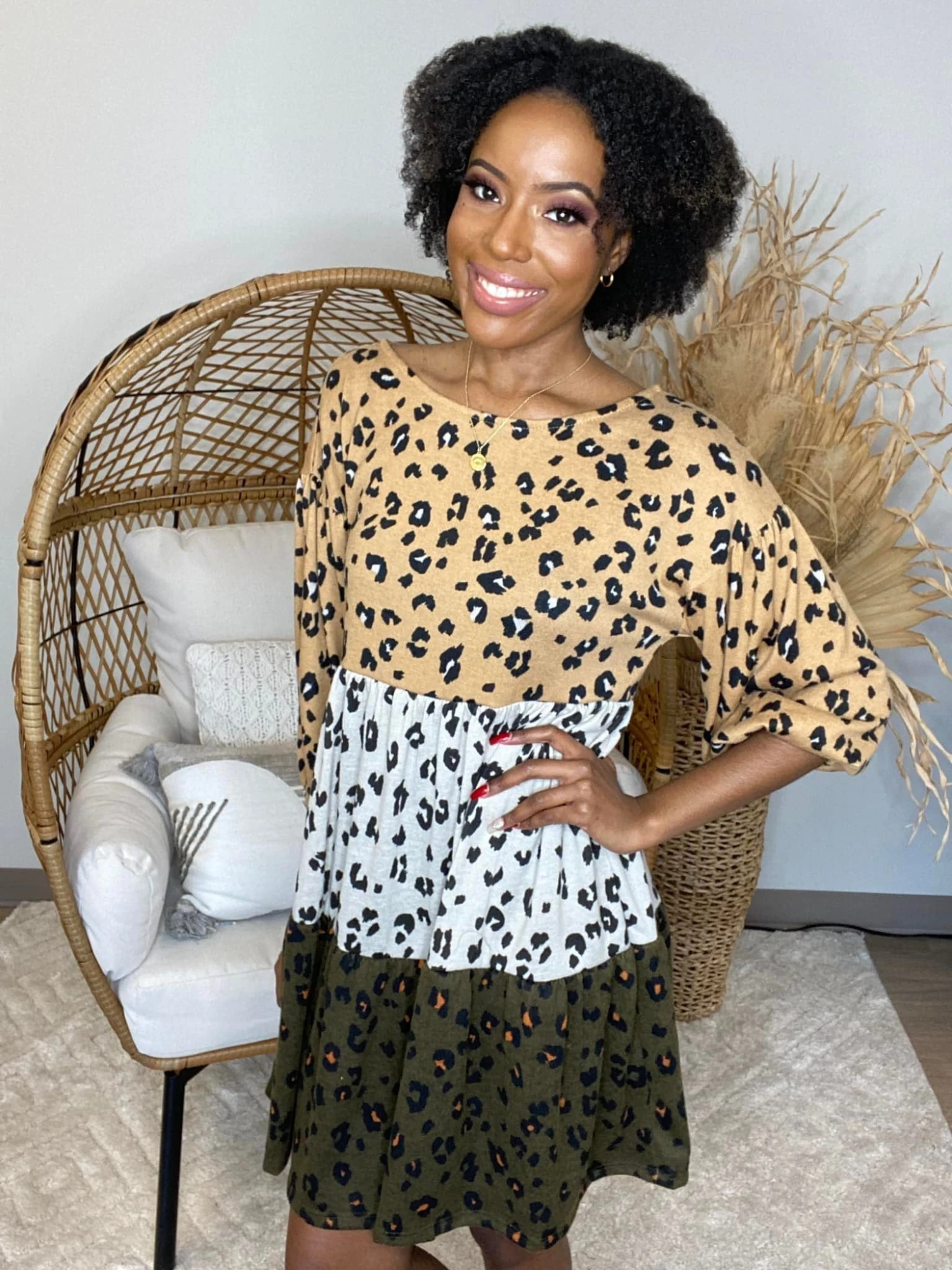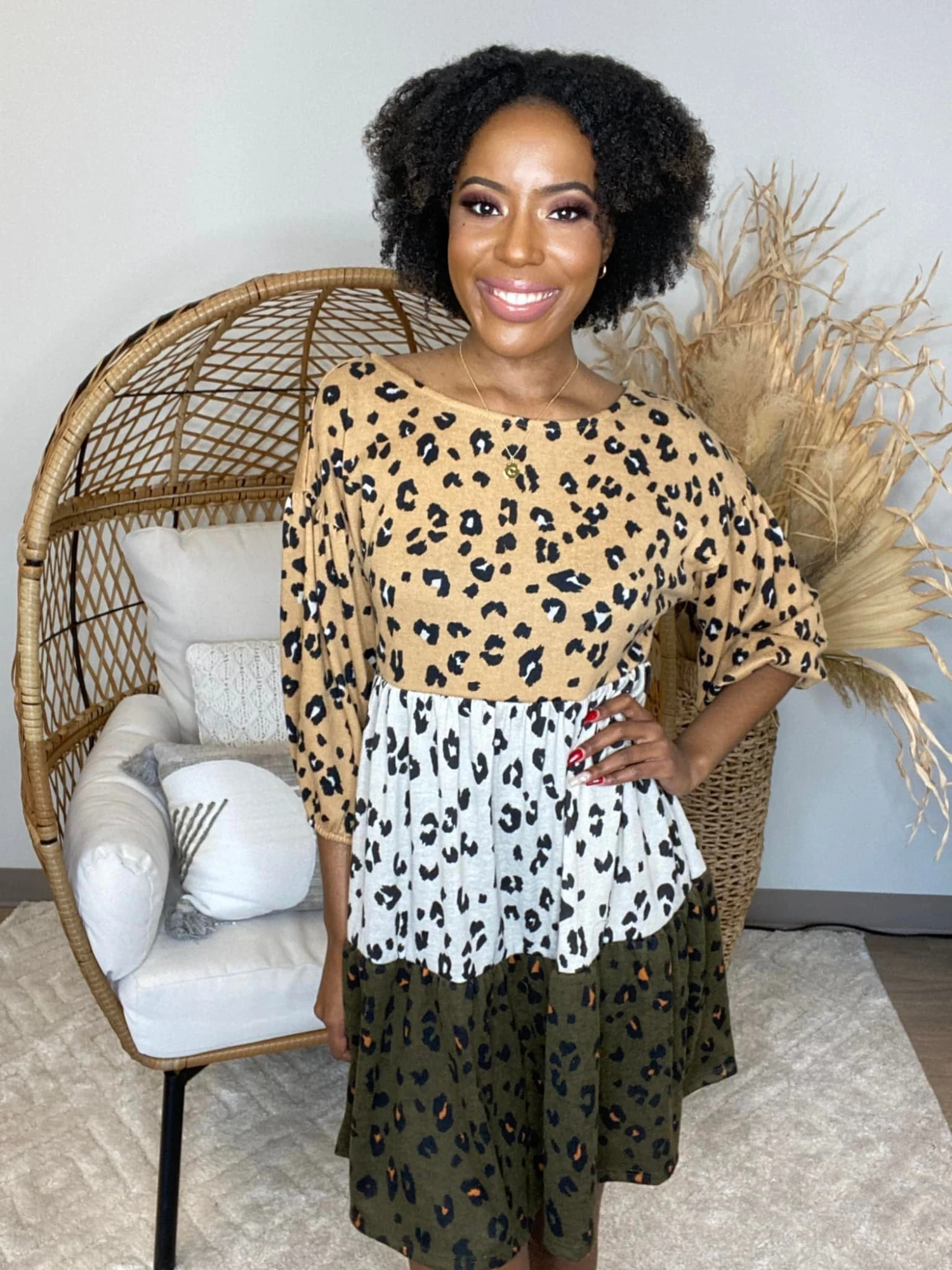 The “Smiles For Days Dress” has arrived! This animal print dress is a must have! With a matching kids style, you do not want to miss out! Snag this one before they are all sold out!