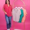 This floral print top is so feminine and absolutely stunning! The smocked details and a tie neck also add the perfect touch of boho elegance! You don’t want to miss this must-have!