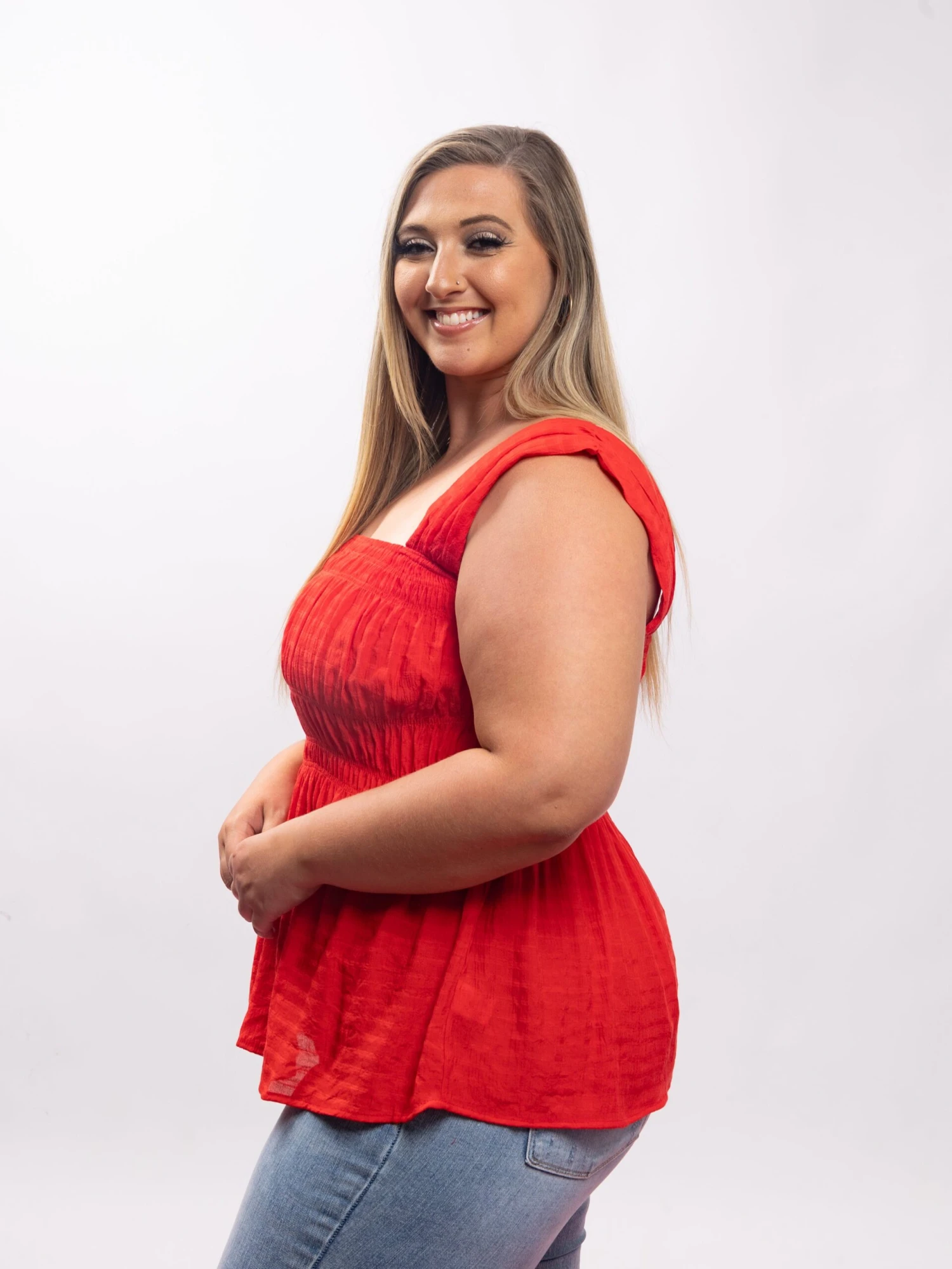 Erin is 5’8, 36C bra, typically wears size L/XL in tops and 14/16 in denim. Wearing size 1X