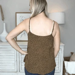 Features: Leopard Print, Strappy neckline, Adjustable Cami Straps