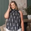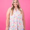 Features: Ruffle Keyhole Neck, Tie, Sleeveless, Mixed Floral Print