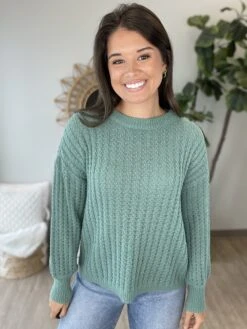 We are obsessed with this crew neck sweater! The knitted look is so cute and chic! Perfect for fall! Snag one, quick!