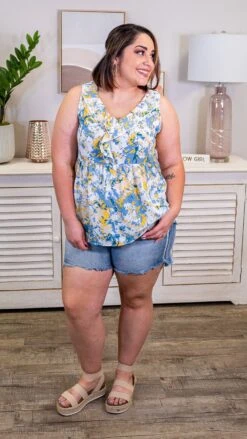 How sweet is the Sweet Spot Top! featuring a ruffled v neck detail she has an adorable floral print too. Pair her with white denim and sandals for a super sweet fit.