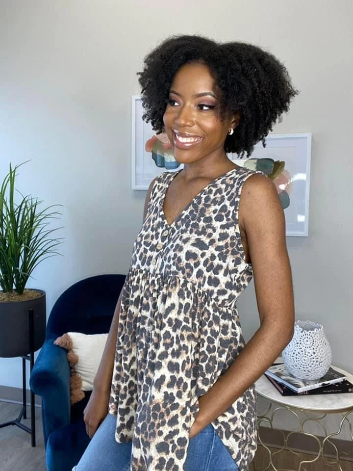 The “Take You For A Ride Top” has arrived! This animal print top is a must have! So simple, yet so stylish, this babydoll top is perfect! Pair with denim or shorts, the possibilities are endless! Snag one before they are gone!