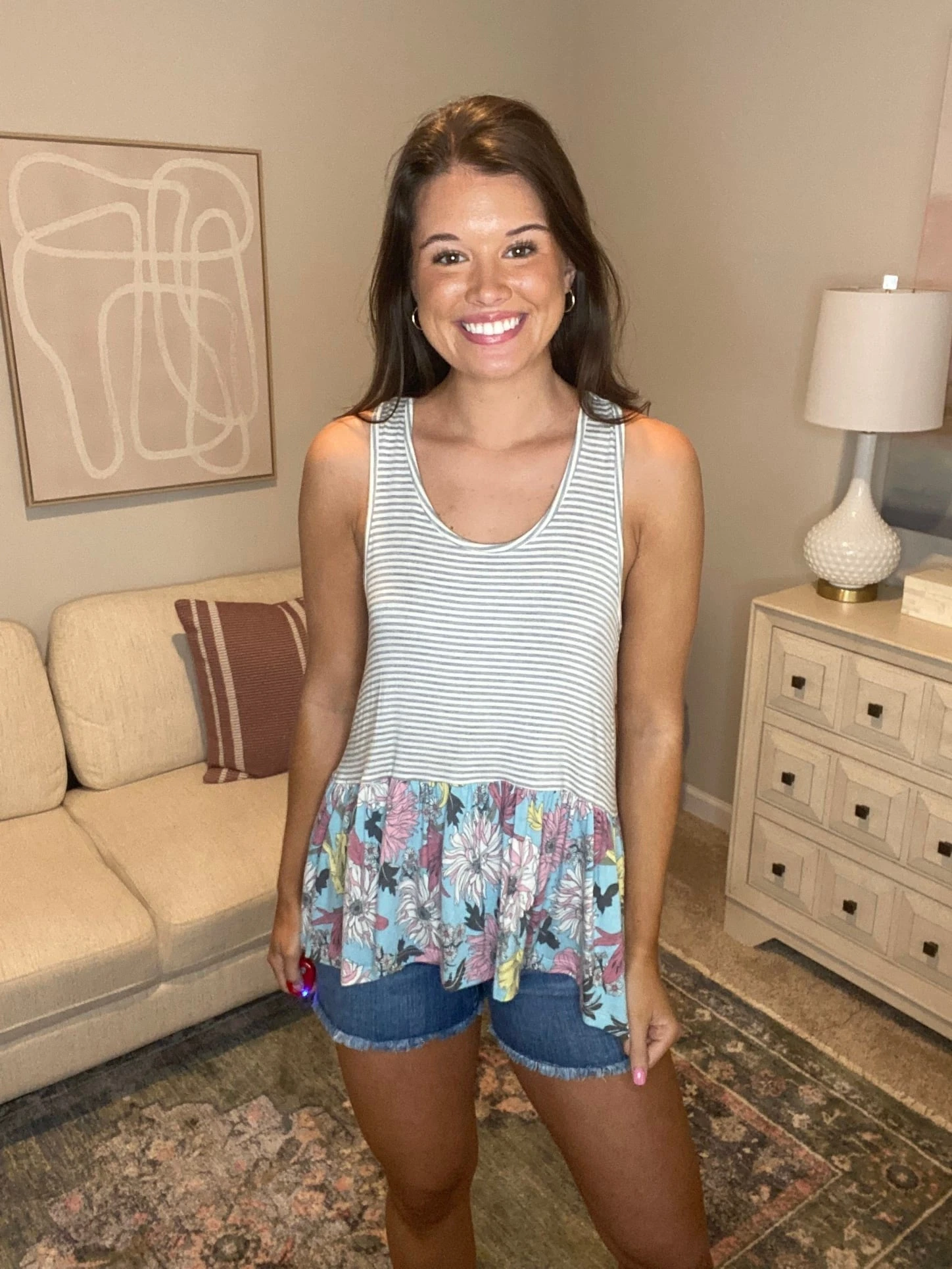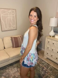 The “Taking A Chance Top” has arrived! This mixed top is calling your name! With a floral print detail, this one is perfect for the summer! Pair with denim shorts for the perfect look! Snag one before they are gone!