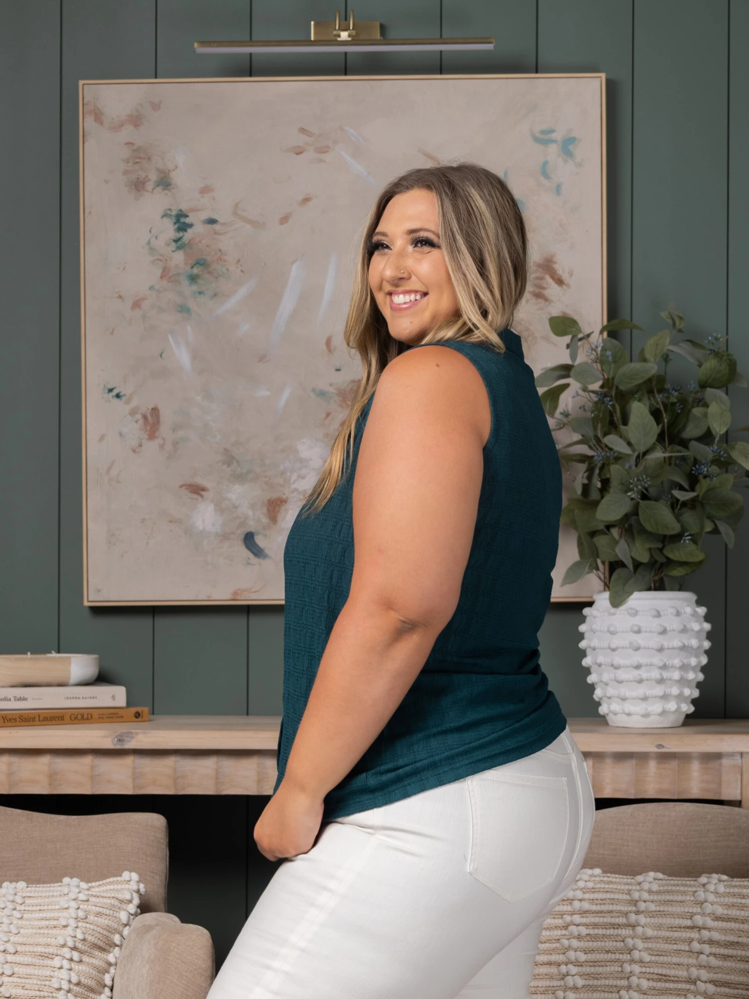 Erin is 5’8, 36C bra, typically wears size L/XL in tops and 14/16 in denim. Wearing size XL