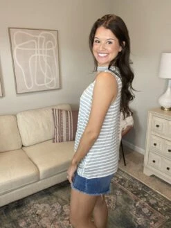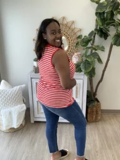 The “Thinking Great Top” has arrived! This sleeveless mock neck top is perfect for the summer! So simple, yet so stylish, this one is a must have! Pair with denim or shorts, the possibilities are endless! Snag one before they sell out!