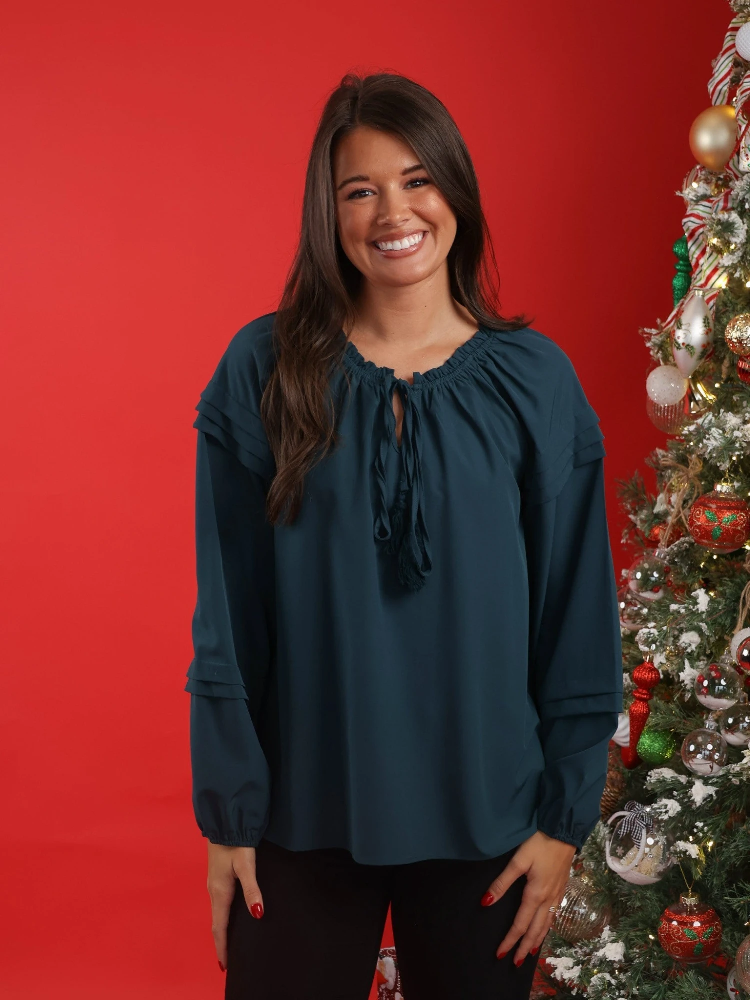 Whether you’re heading to a special event, updating your professional wardrobe, or simply just elevating your everyday style, this top is your go-to choice!