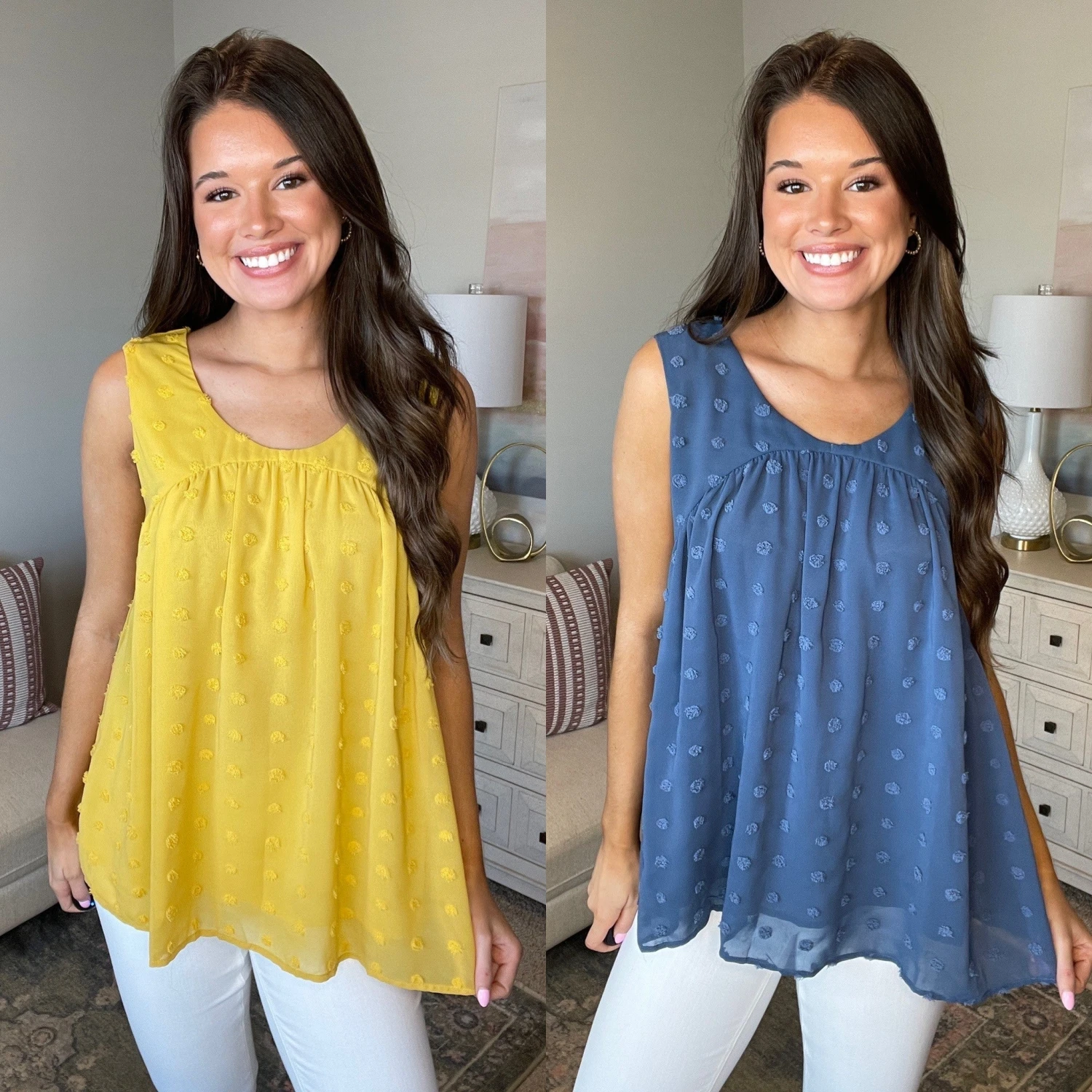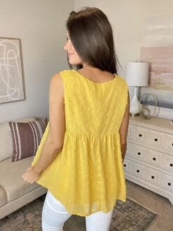 Features: Sheered Polka Dot V Neck Sleeveless Top