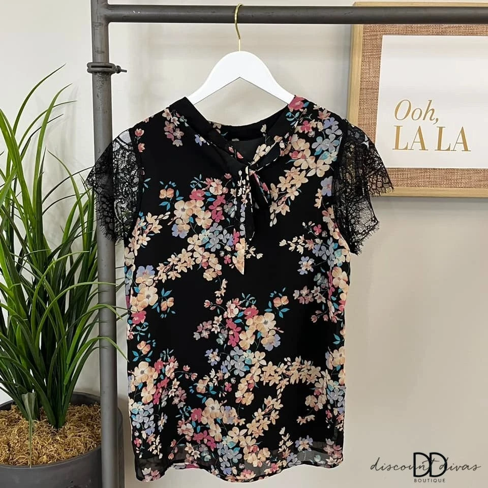 The “Trail Lead Blouse” is just what you have been looking for! With a round neckline and lace detailing, you will not regret this one! The print here makes this one a must have! Pair with denim and you are all set!