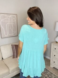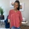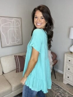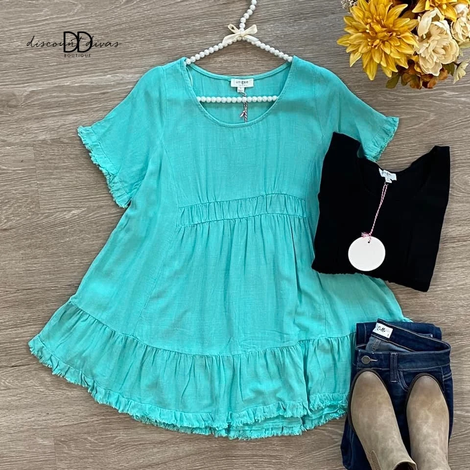 The “Trying New Top” is wanting you to try something new with this top! Frayed and ruffle hemline details make this one so stylish! Bright and beautiful, you will be looking so good wearing these colors! Snag one before they sell out, you know they will!