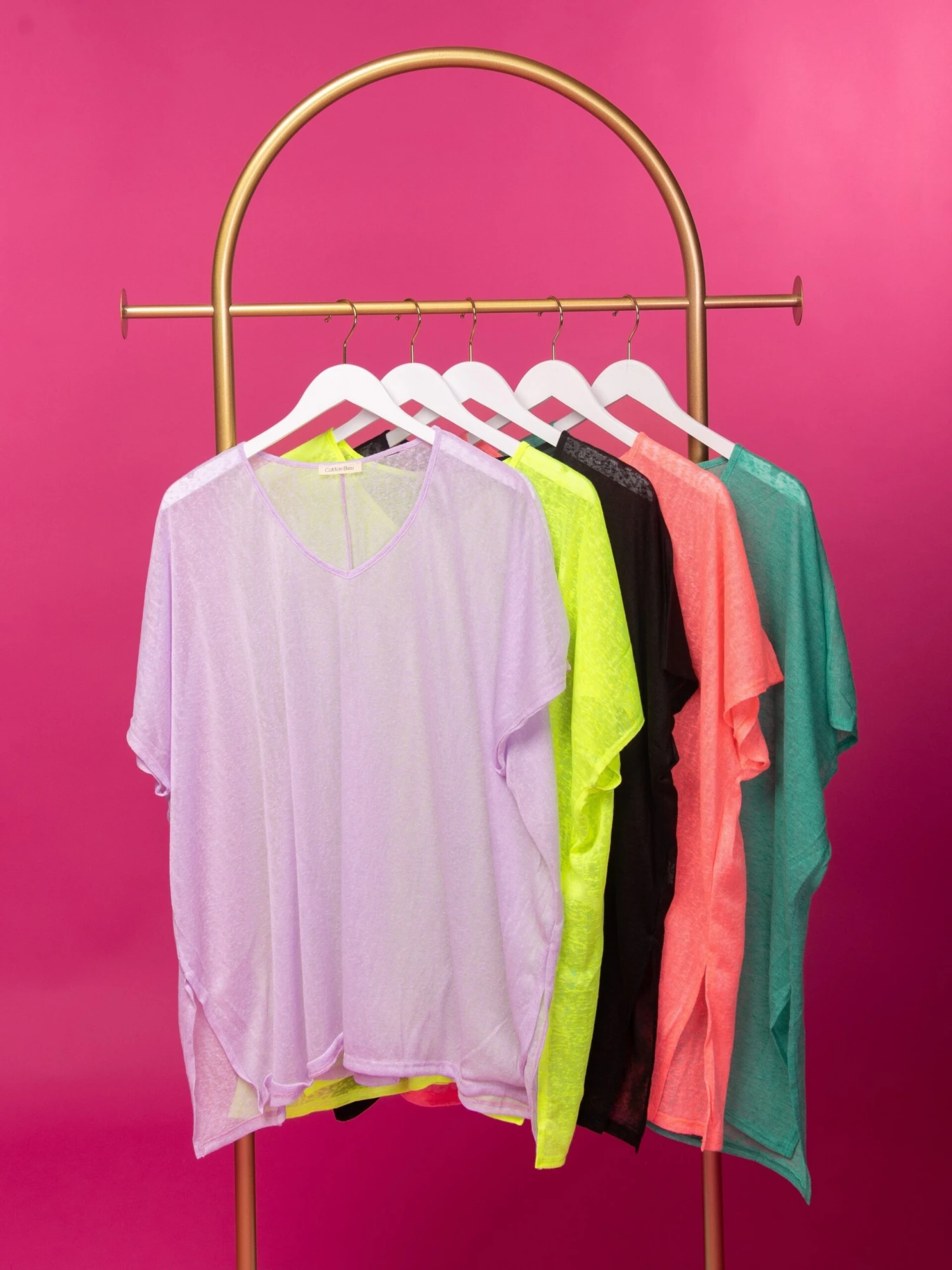 Features: Short Sleeves, V Neck, Oversized, Side Slits