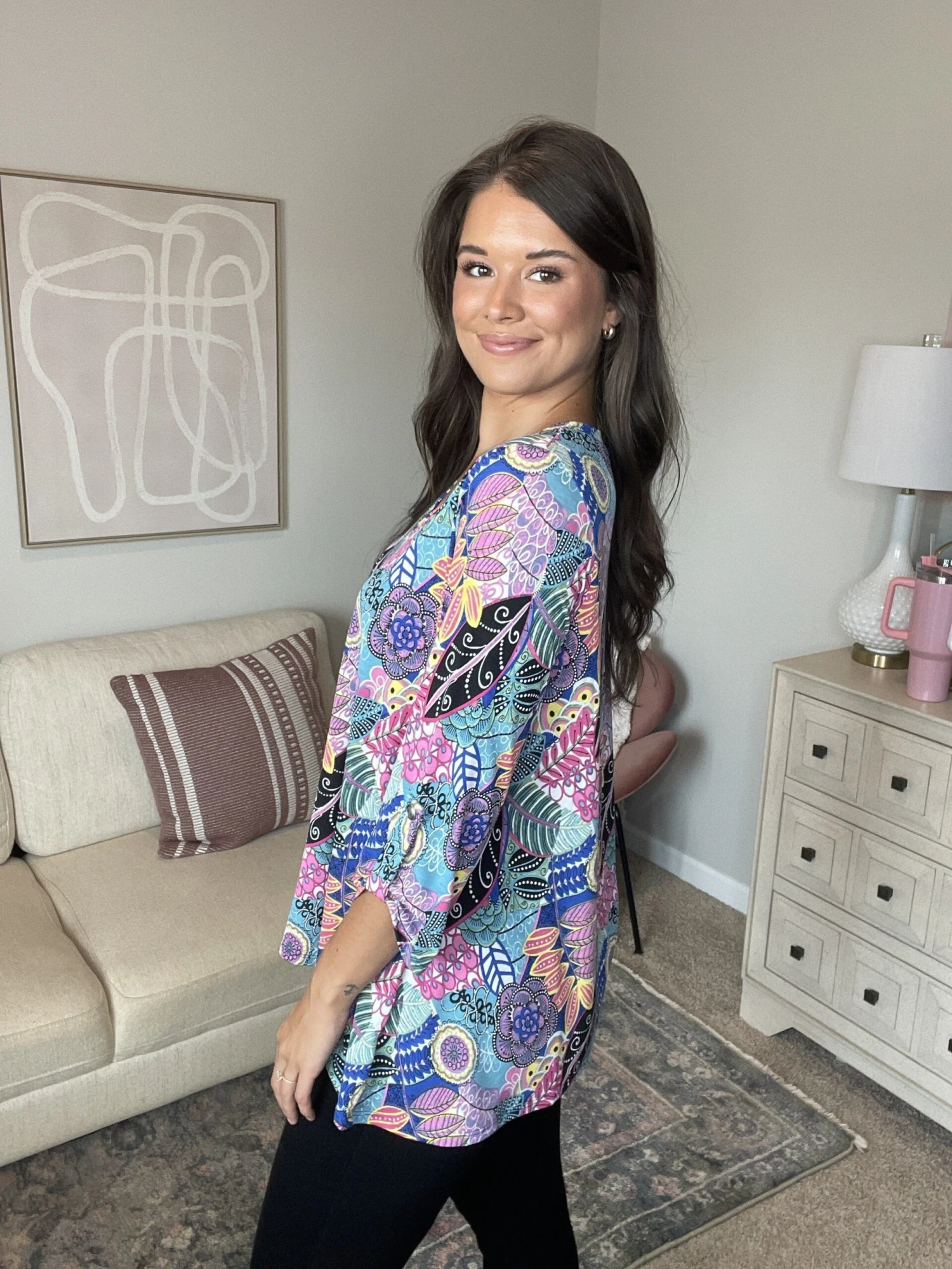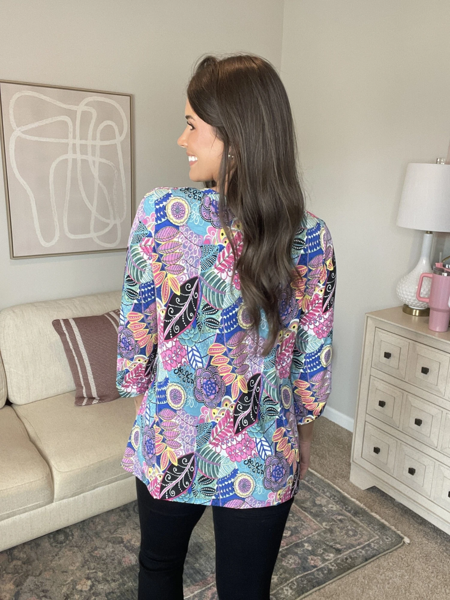 Features: mixed floral print, v neck, long sleeve