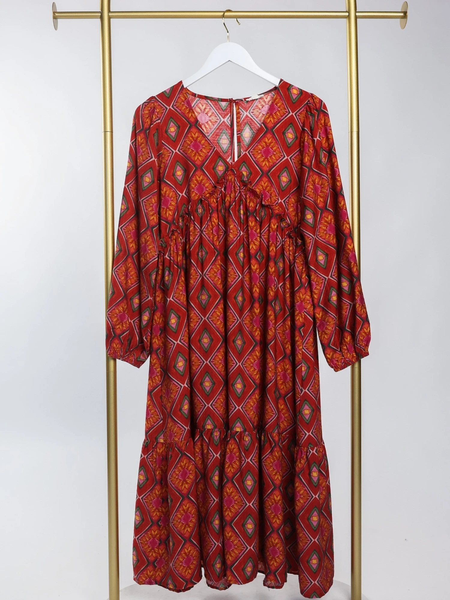 Features: Long Sleeves, V Neck, Tiered