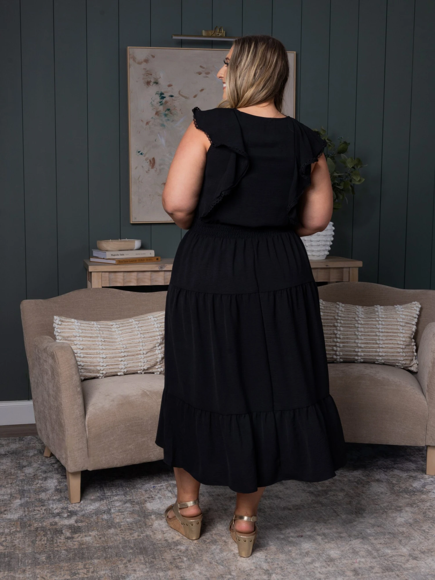 Features: V Neck, Lace Flutter Sleeves, Lined
