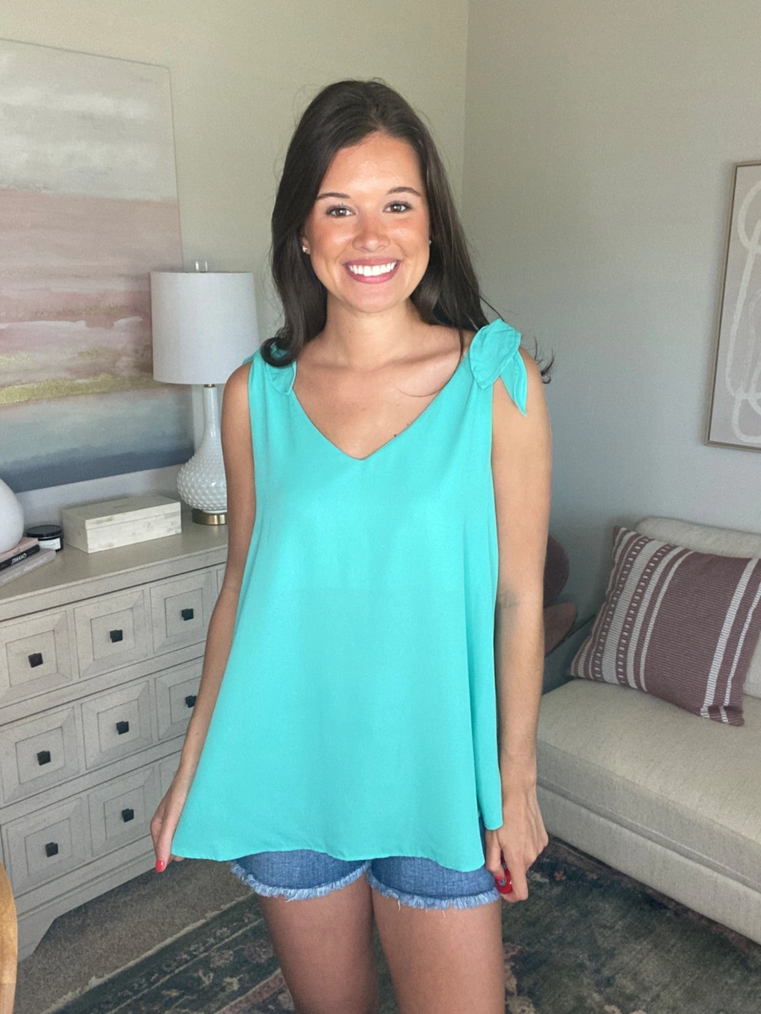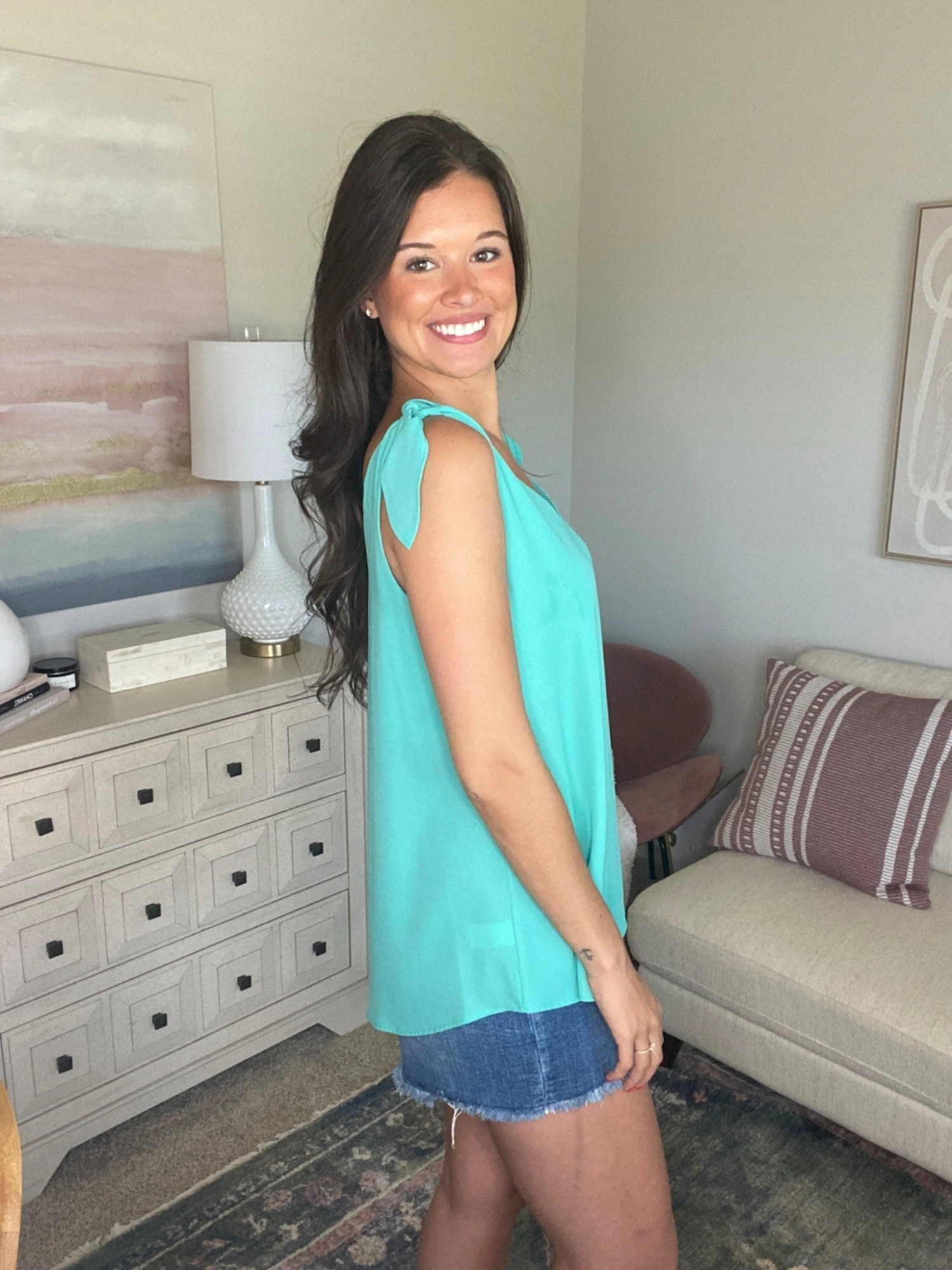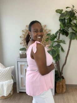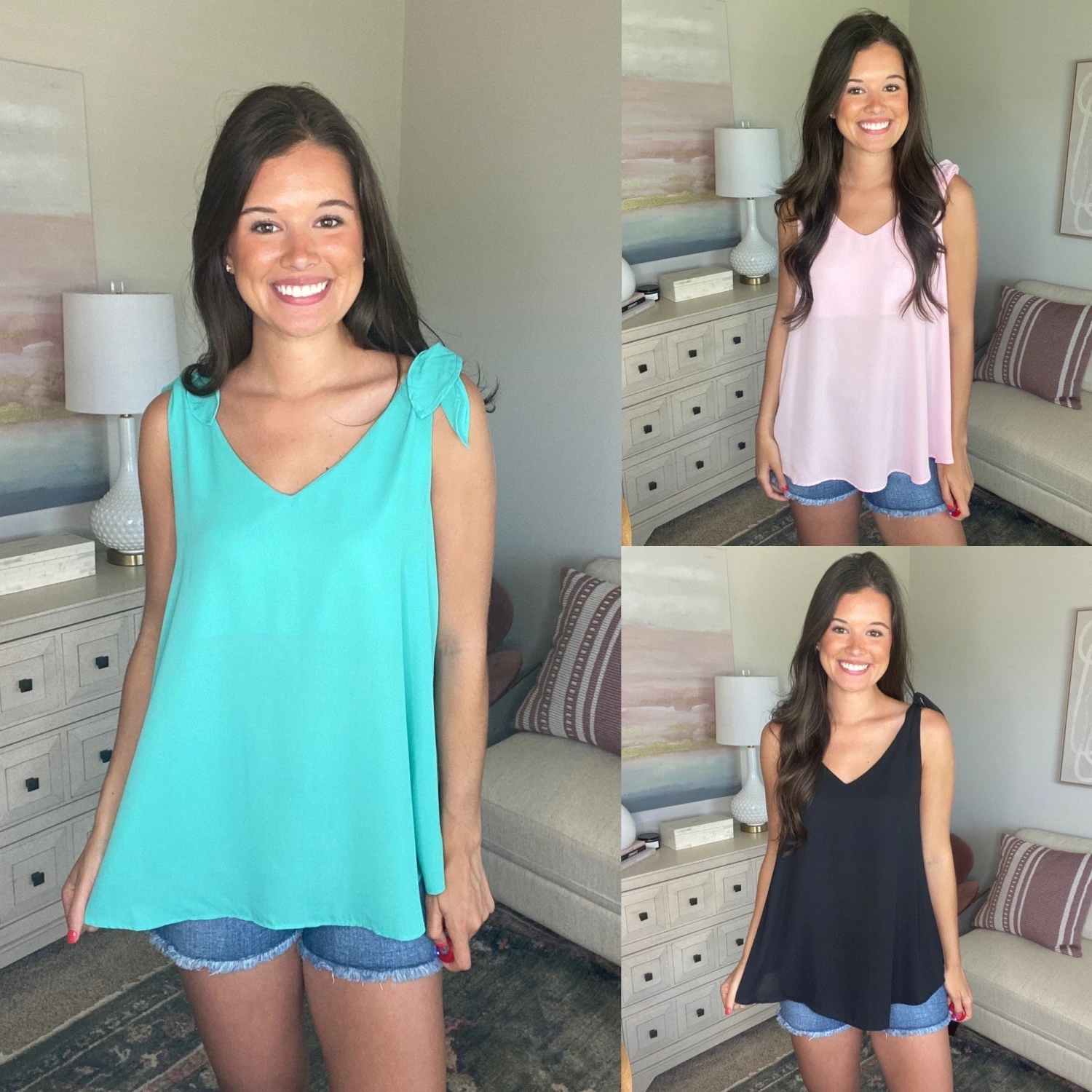 The “Swim To You Top” has arrived! This super cute tank top is just what you need! We are loving the tie shoulders! Be sure to snag one before they are gone!