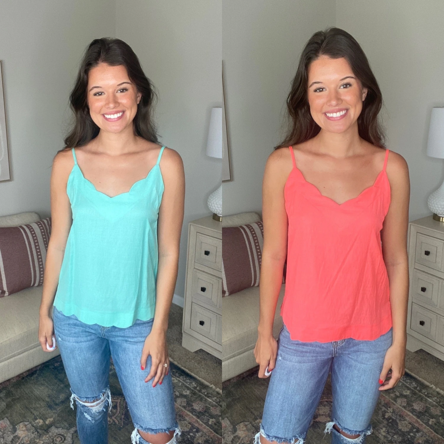 The “Vitamin D Top” has arrived! This scallop hem top is calling your name! With adjustable spaghetti straps, this one is perfect for everyone! The side slits here add just the right amount of style, pair with denim and you are all set! Snag one in time for summer before its too late!