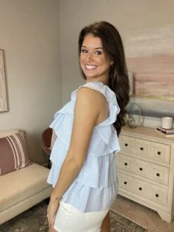 The “Wait For Me Top” has arrived! This adorable ruffle top is just what your closet is missing! We are loving the one shoulder and tiered look! Be sure to snag one before they sell out!