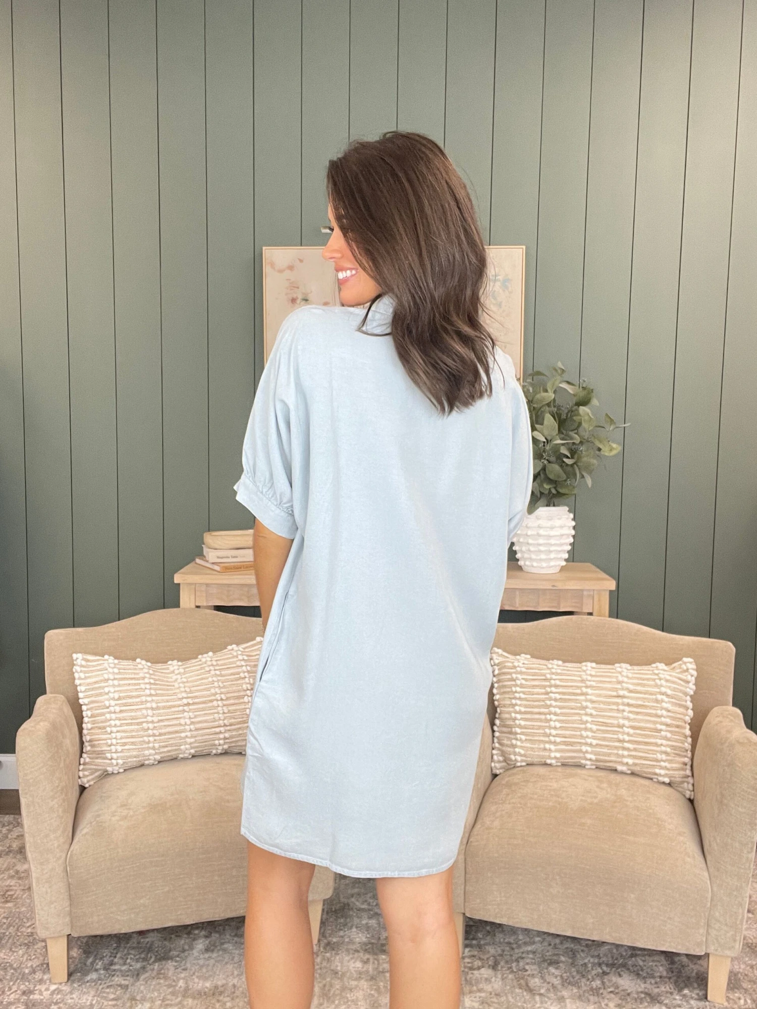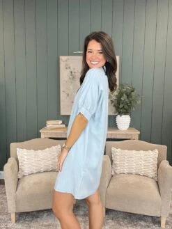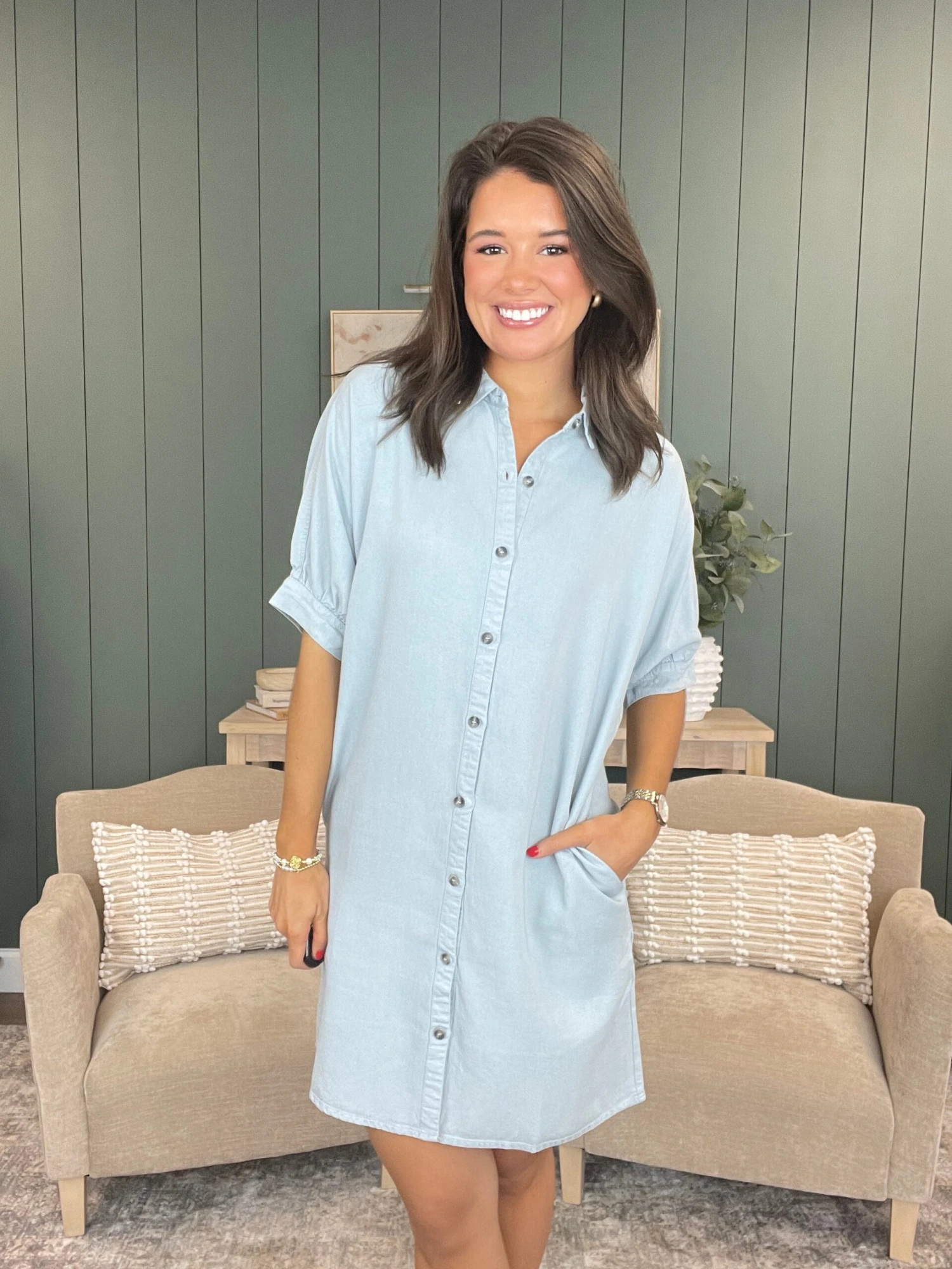 Features: Cuffed Puff Sleeve, Collared Neck, Button Down
