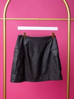 The washed faux leather adds a touch of rebellion, while the cargo pockets bring such a trendy vibe to this skirt! A bold and confident look, it’s the perfect piece to make a statement!