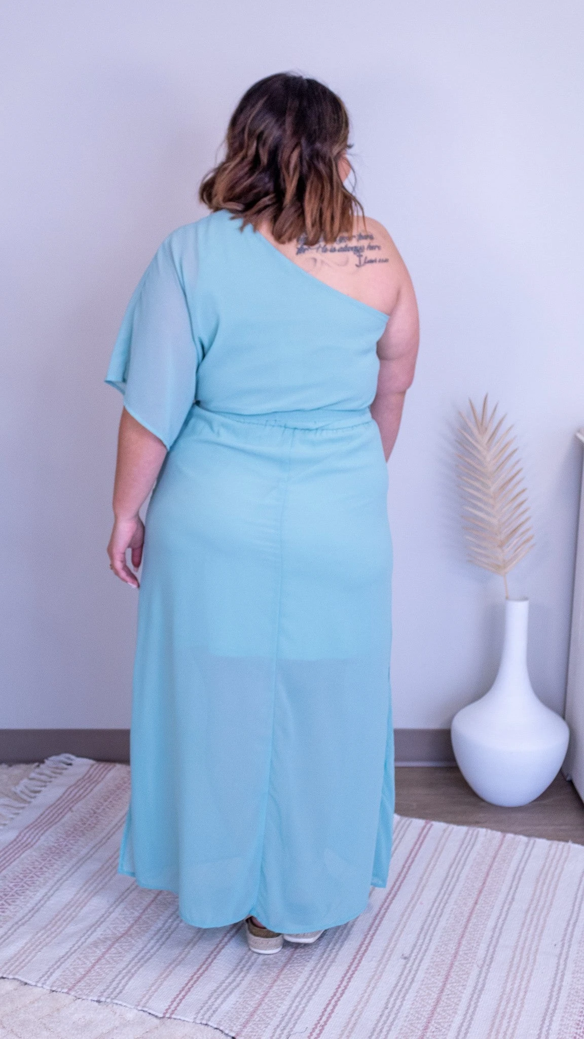Features:One shoulder sleeve, Side slits, Sash bow, Tiered detail