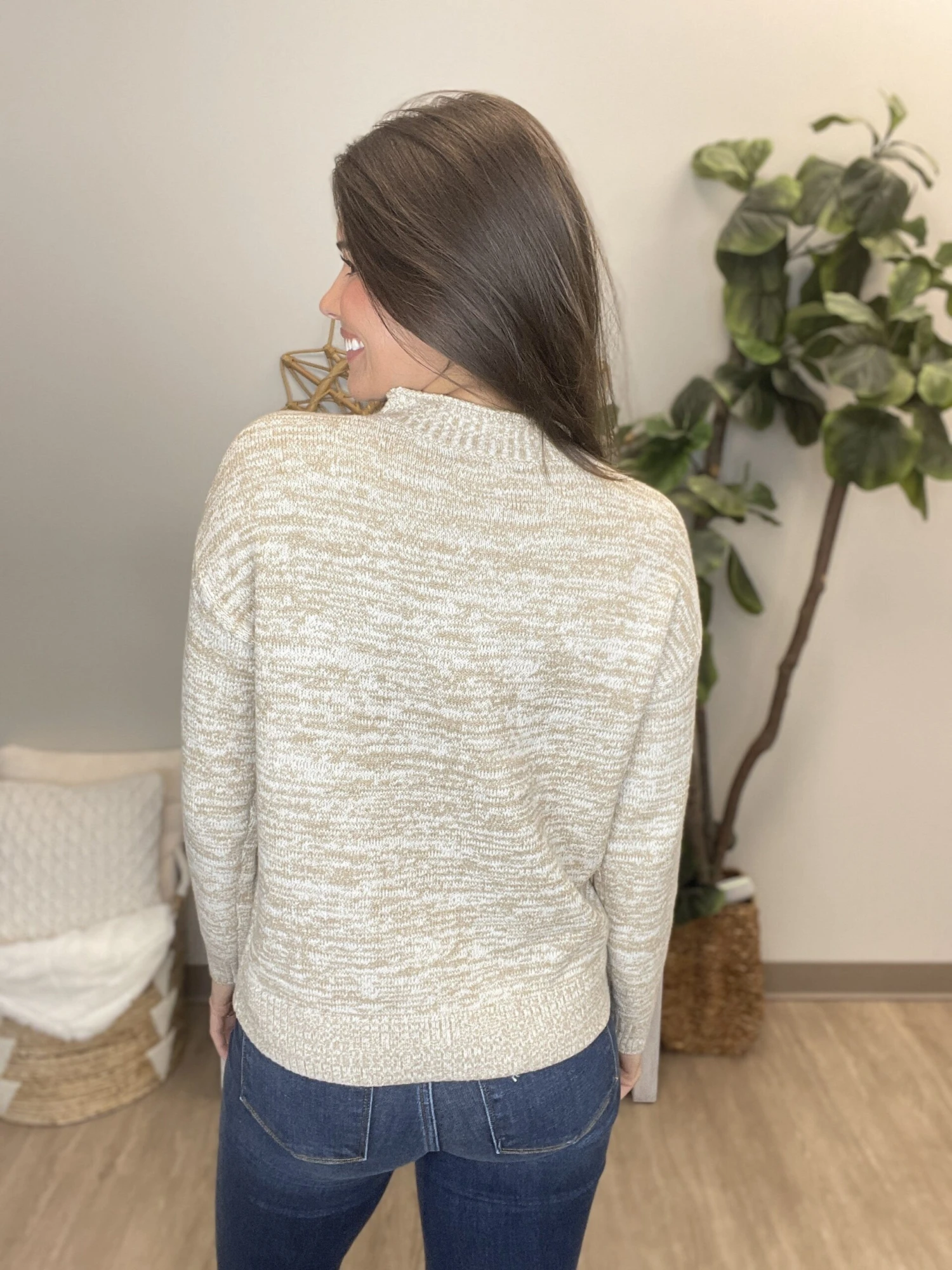 Features: Mock Neck, Long Sleeves, Mixed Yarn Print