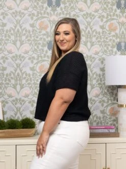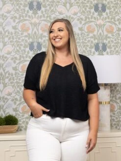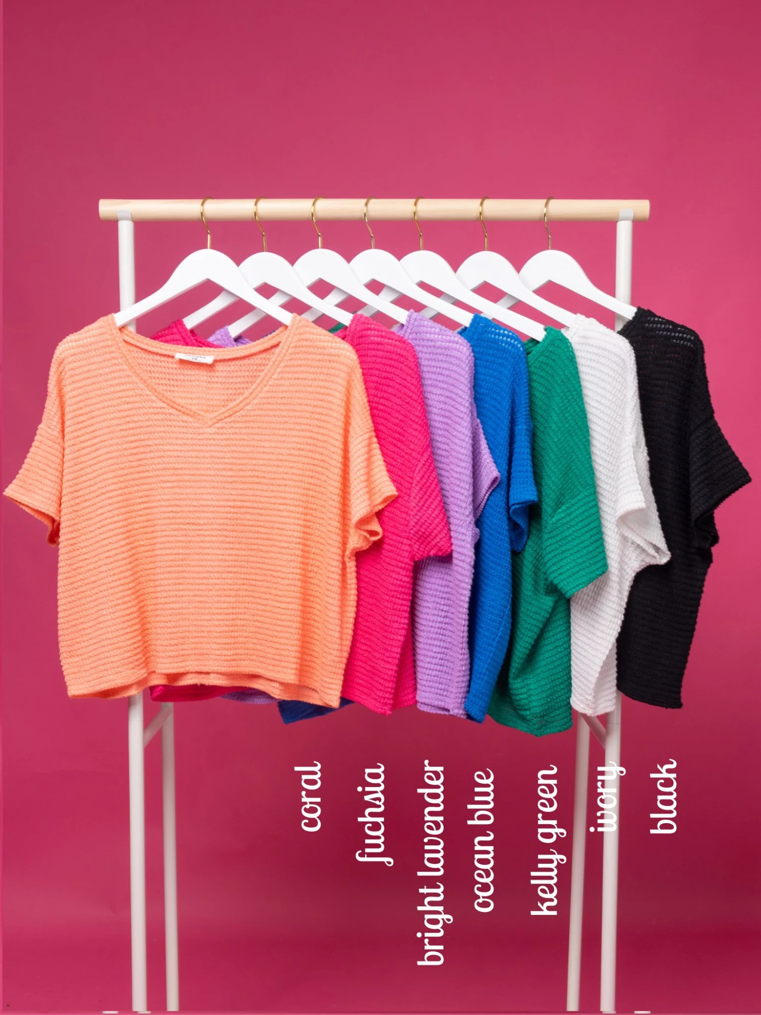 Features: Short Sleeves, Jacquard, Boxy, V Neck