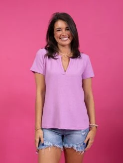 Features: Short Sleeves, V Neck, Waffle Knit