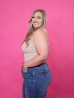 Erin is 5’9, 36C bra, typically wears size L/XL in tops and 14/16 in denim. Wearing size XL