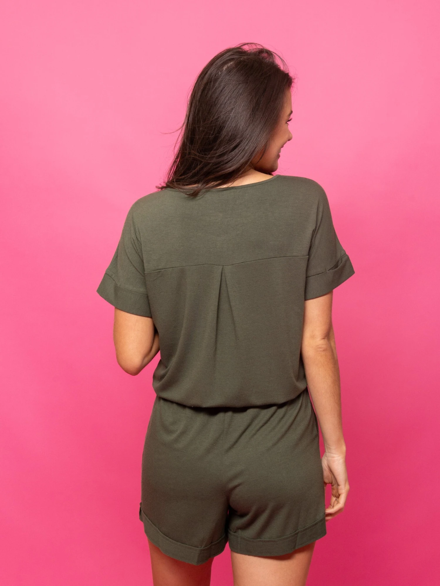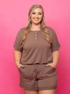 BEST SELLER! A $20, super comfy, Henley style romper is always an automatic add to cart!