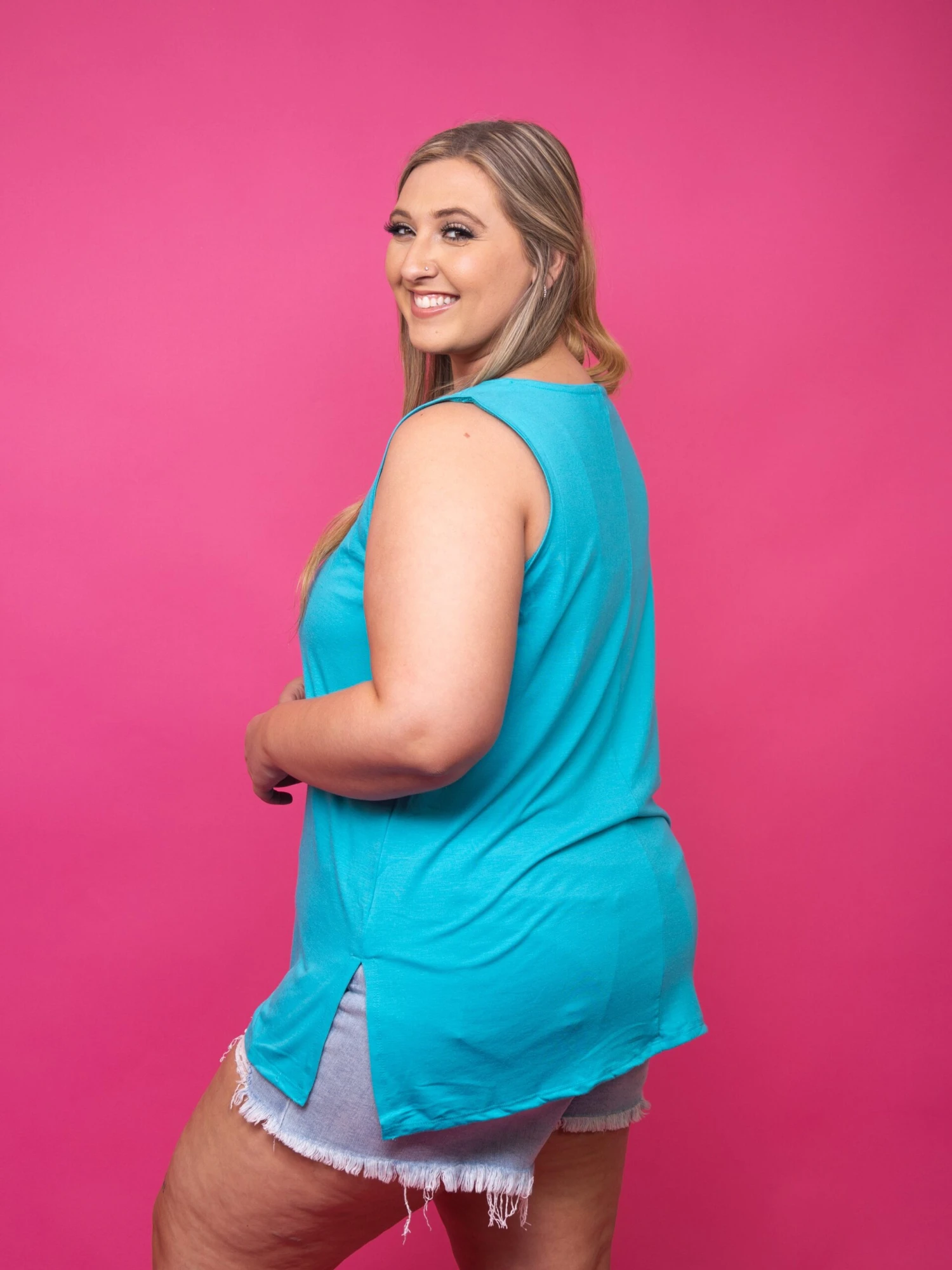 Features: Sleeveless, Round Neck, Side Slits