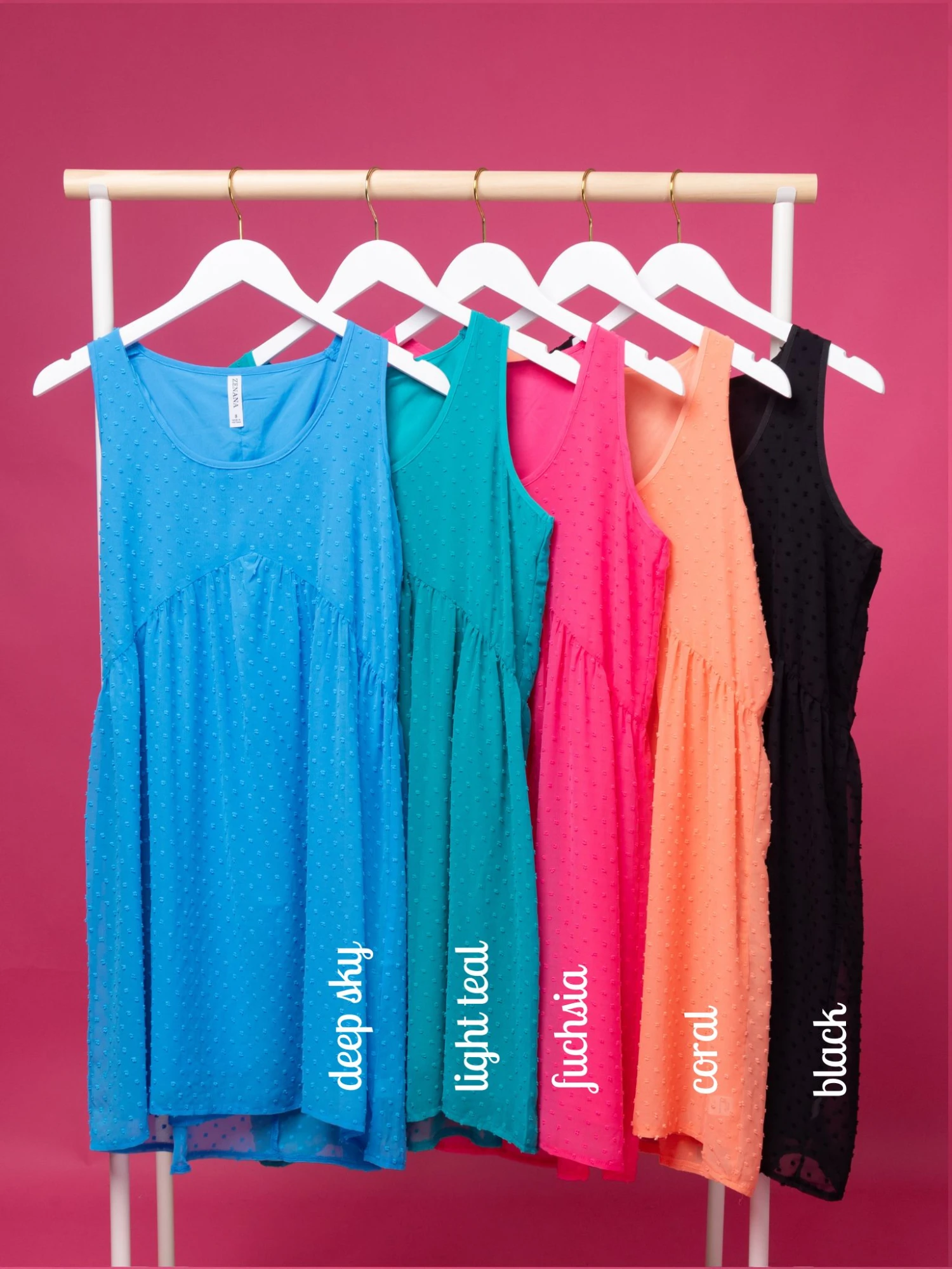 Features: Sleeveless, Round Neck, Swiss Dot, Lined