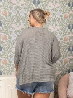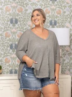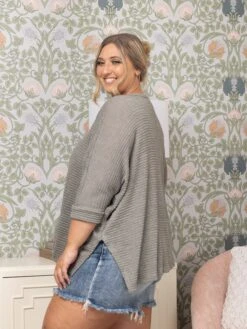 Features: Side Slits, V Neck, 3/4 Sleeves, Waffle Knit