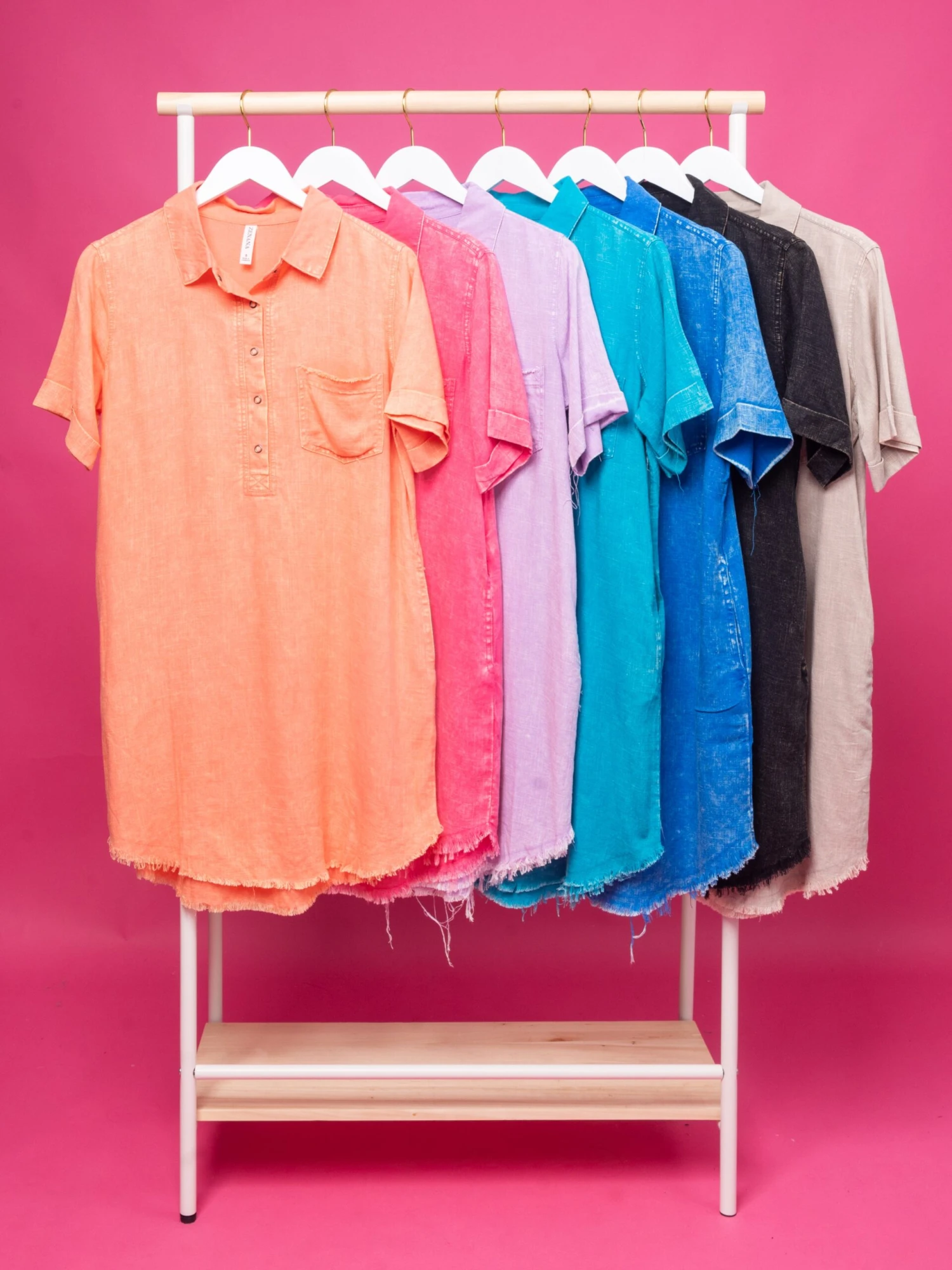 This cute, linen dress offers a relaxed and airy feel that’s perfect for warm weather! Pair it with sandals or sneakers for a casual look or dress it up with wedges!